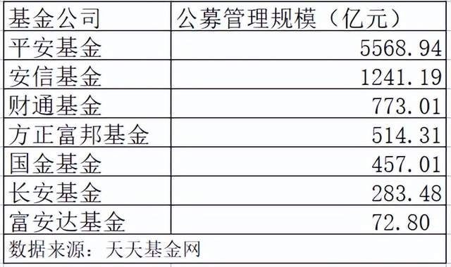 从公募市场来看,2011年,市场共计有7家公募公司成立,2023年二季度末,安信基金和平安基金规模已经突破千亿,平安基金规模更是超过5000亿。长安基金在这7家公司中,排在第6位,仅高于富安达基金。