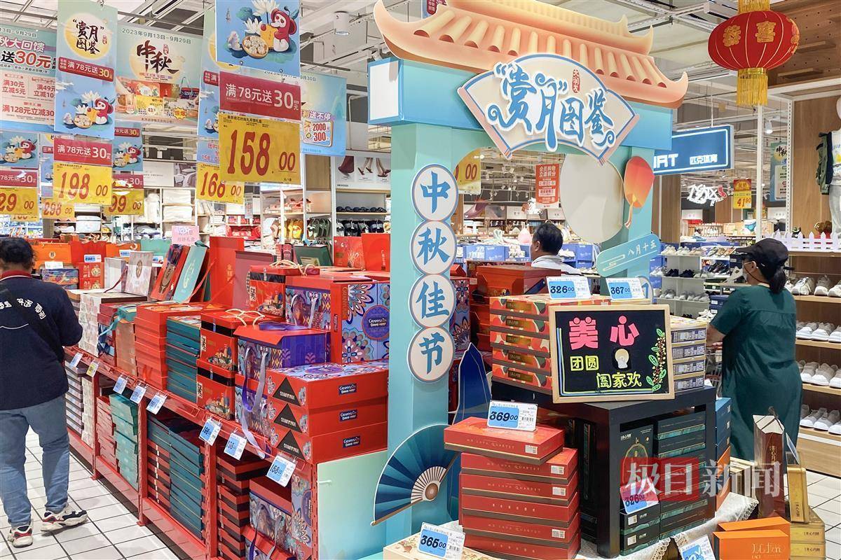 距离2023年中秋节不到半个月的时间,江城武汉各大商超的中秋时令商品已进入销售旺季。