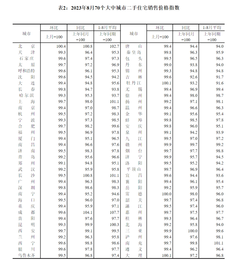 第一,8月份70个大中城市,新房价格环比下跌的城市增至52个,同比下跌的城市44个。二手房环比下跌的城市66个,1个持平,仅3个城市上涨,意味着94%的城市房价在跌,同比亦是如此。