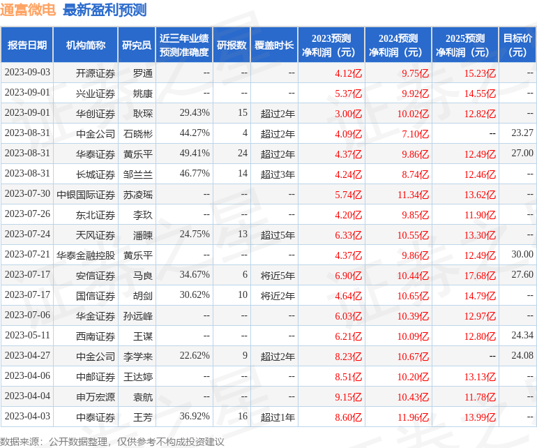 以下是详细的盈利预测信息: