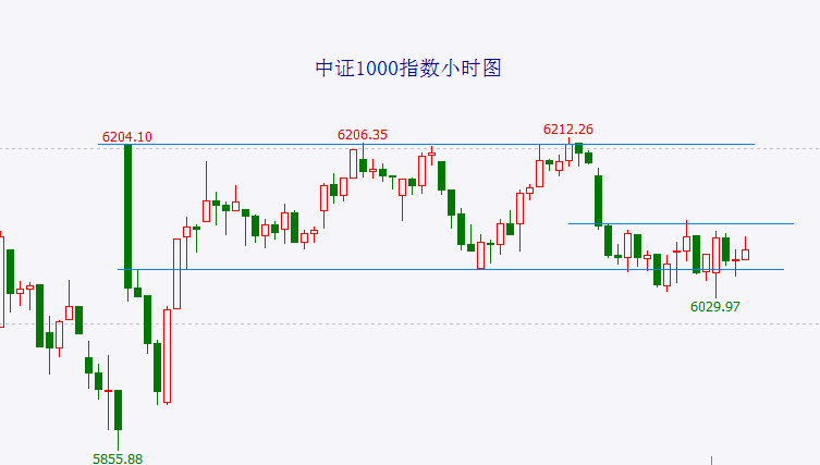 从富时A50指数期货4小时图来看,跌破三角形下轨后出现强力反抽,不过依然受阻于上轨。破位反抽是正常的走势,上涨力度有些超预期。理论上来看,这里向下假突破后再向上突破也有可能,只不过可能性偏低。中证1000指数依然处于震荡中,小时图看,在形成大的箱体后,局部又形成一个小的箱体,在下轨附近反复震荡。接下来将出现方向选择,投资者可耐心等待。