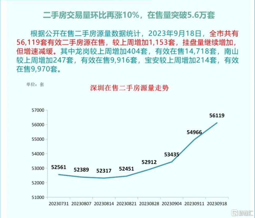 根据诸葛找房平台数据,2023年9月18日最新有效挂盘量达到了84029套,今年4月3日深圳二手房有效挂盘量为52790套。
