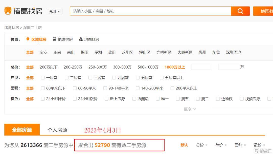 如果从全网在售二手房情况来看,深圳二手房的公开房源量也有8万多套。