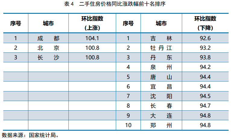 二手住宅:价格环比持续下降,一线城市跌幅收窄