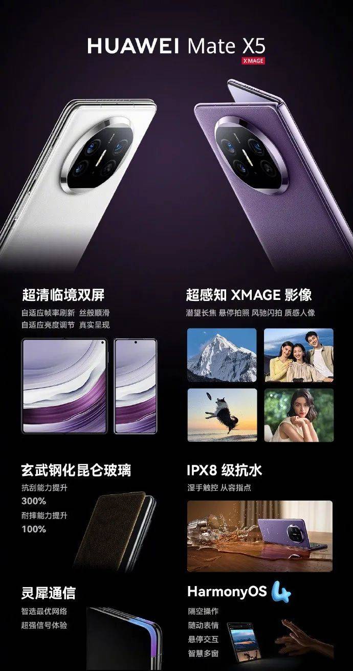 Mate X系列是华为折叠屏旗舰,今年春季发布会上,华为发布了Mate X3,这次跨过“X4”,直接发布Mate X5,这种“越级”也让消费者对华为全新一代折叠屏手机华在技术和体验上的重大升级充满期待。