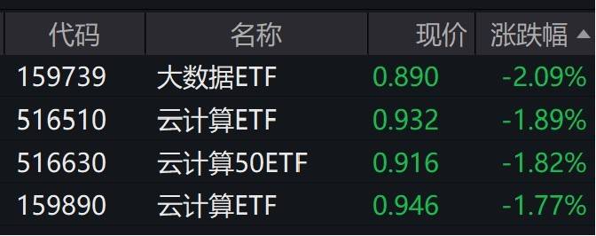 受重仓股下跌影响,大数据ETF跌逾2%,创近7个月新低。
