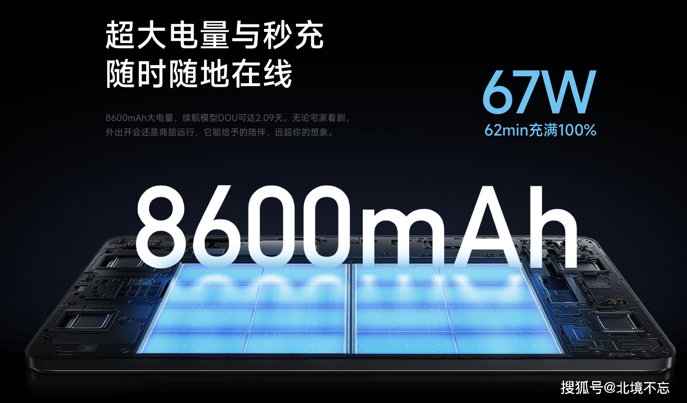 小米平板6Pro续航体验如此出色,核心原因是内置了8600mAh超大电池,模拟日常使用续航可达2天的时间,不管是宅家追剧、外出开会还是商旅远行,小米平板6Pro都能给予你超出预期的陪伴。充电方面支持了67W有线快充,大概一个小时出头就能充满电池。
