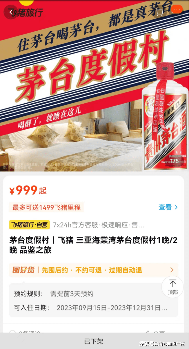 简单来说,这次跨界合作并非茅台集团推出,或与茅台联名推出,而是由三亚海棠湾茅台度假村合作的供应商向飞猪供货,平台再给补贴。