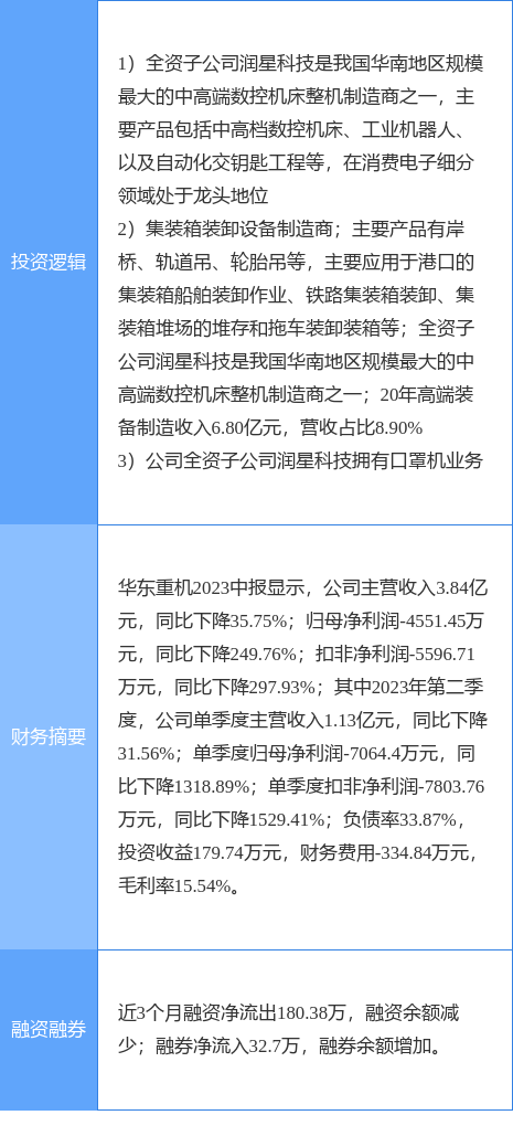 华东重机涨停收盘,收盘价3.94元。该股于9点58分涨停,未打开涨停,截止收盘封单资金为7224.23万元,占其流通市值2.26%。