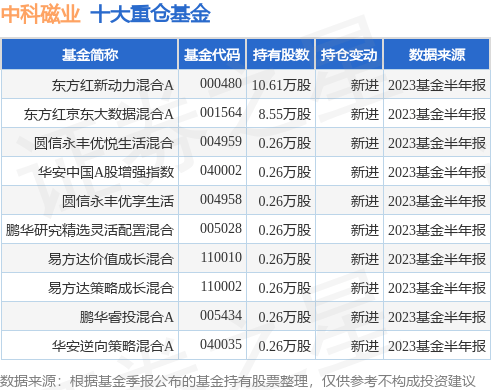重仓中科磁业的前十大公募基金请见下表: