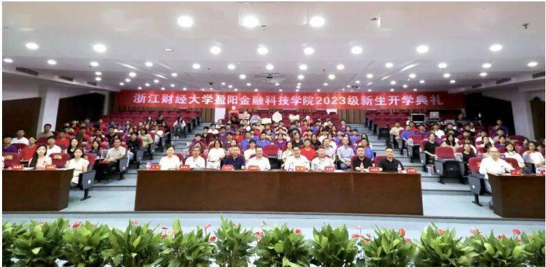9月15日,浙江财经大学盈阳金融科技学院隆重举行2023级新生开学典礼,袋鼠云创始人、董事长陈吉平,副总裁石波,政府事务部经理马海娟一行出席开学典礼。