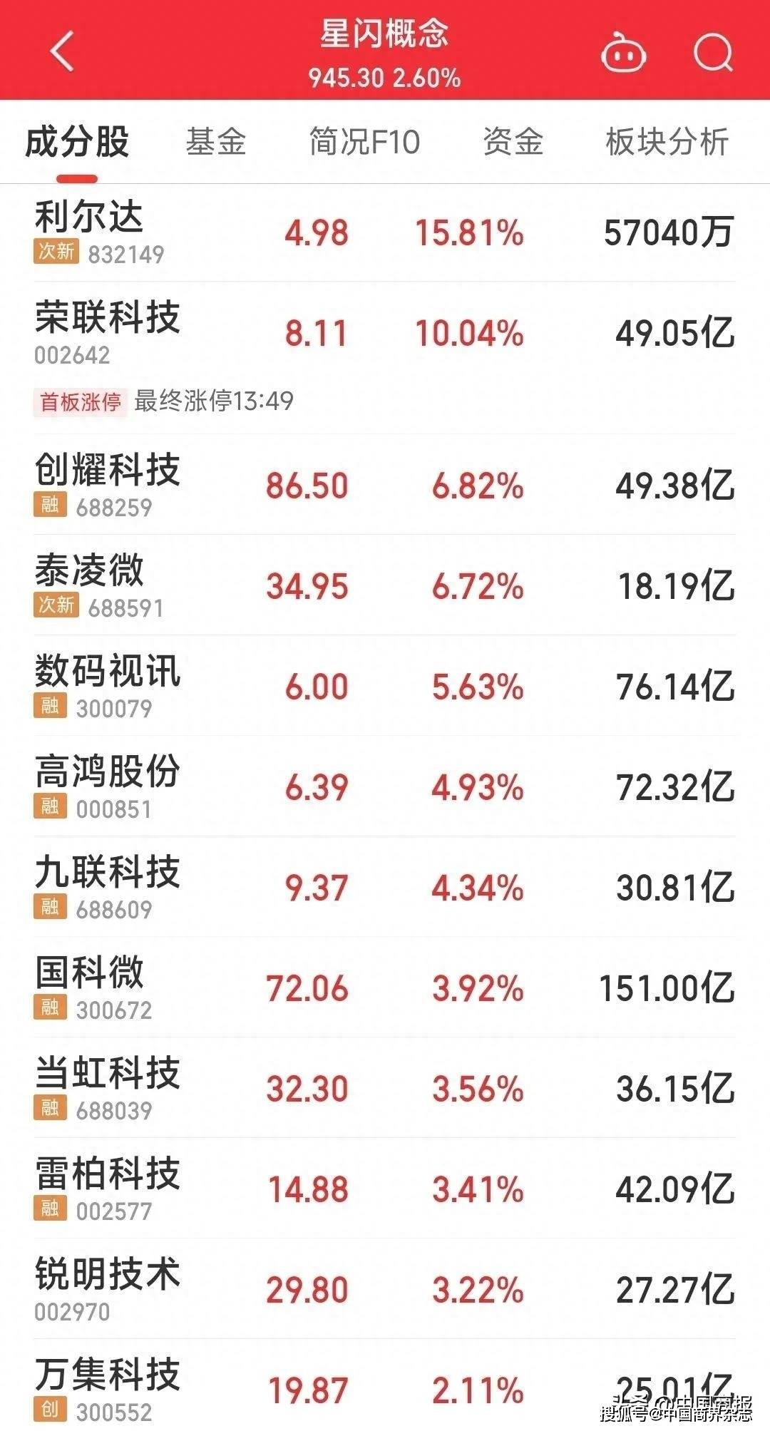 部分华为概念股午后获资金抱团,华映科技再度涨停,捷荣技术、中富电路小幅冲高,星闪概念涨幅居前,荣联科技首板涨停。
