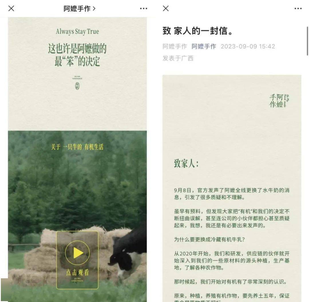 曾靠着水牛乳出圈的阿嬷手作宣布将产品中使用到的水牛乳更换为一款无添加的冷藏有机牛乳,随后很多消费者纷纷表示宁愿品牌涨价,也不希望更换原材料。