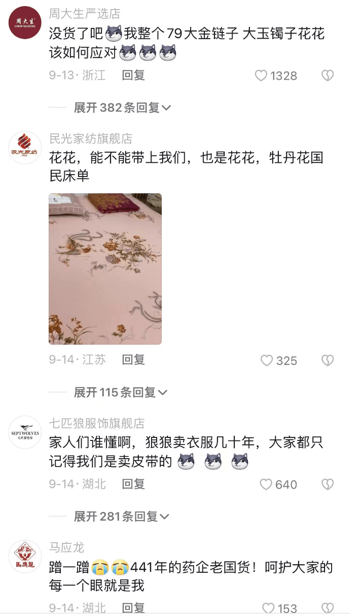 结果评论区全是其他国货老品牌来“捡粉丝”: