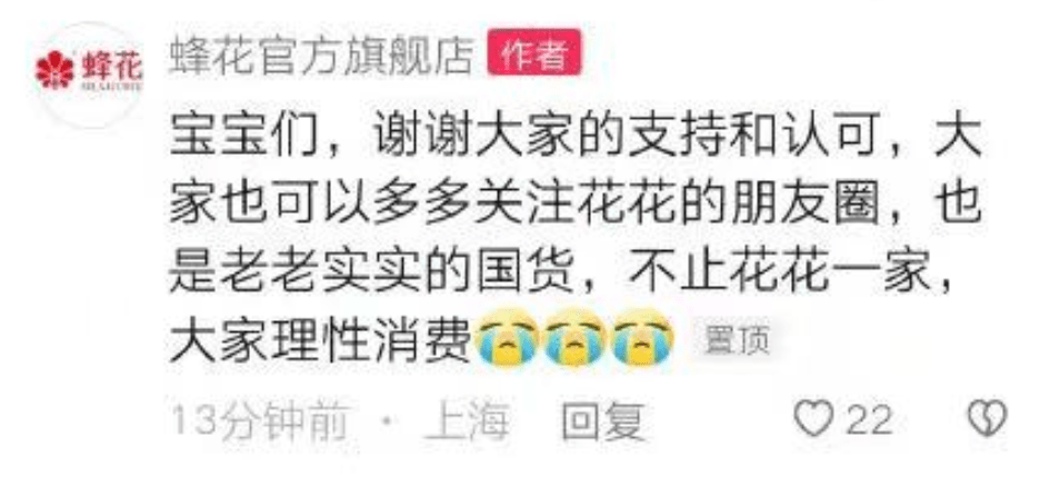 网友们也用实际行动,对国货表示了支持,纷纷在直播间野性消费,搞得蜂花的产能都跟不上了,呼吁大家去买其他品牌。