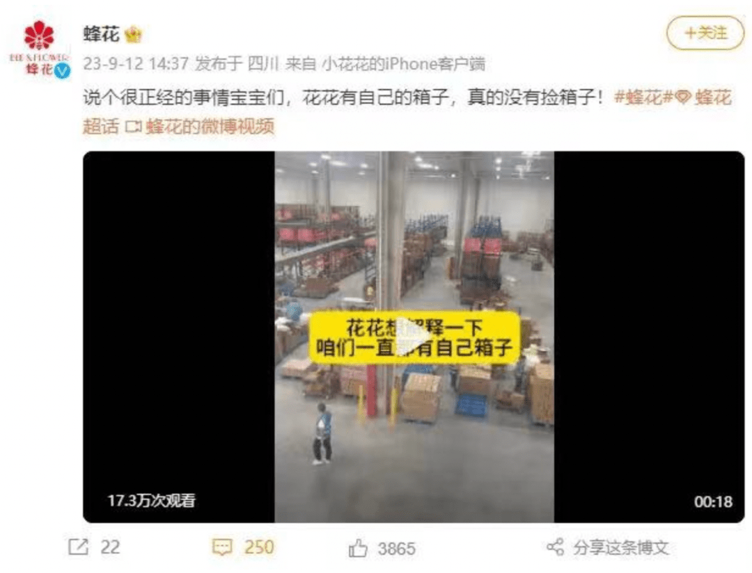 最近蜂花特意发了一条微博,表示自己一直有自己的箱子。只是订单量太大了,纸箱子不够了,才去借用了其他箱子发货。