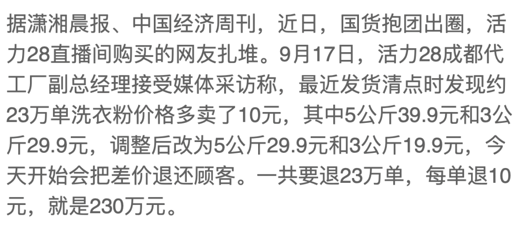 比如前面说的活力28,10块钱都要一单一单退,如此诚信的行为,赢得了众多的点赞。
