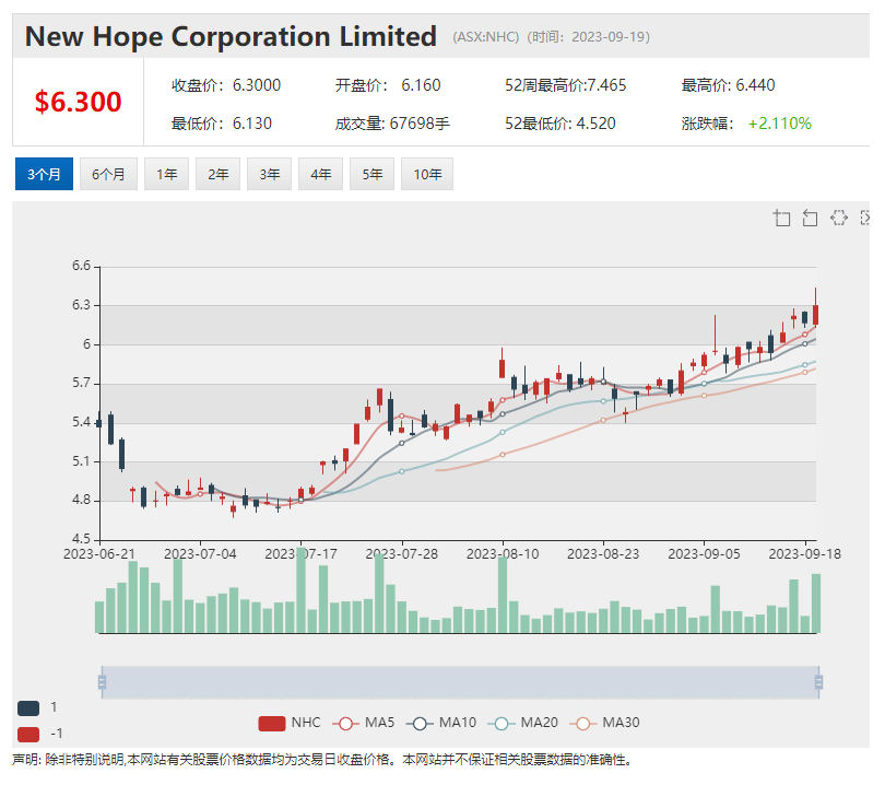 受该公告影响,New Hope股价周二早盘上涨。10:46成交价为6.35澳元,上扬0.18澳元,涨幅2.92%。该股近一年的投资回报率为16.30%。