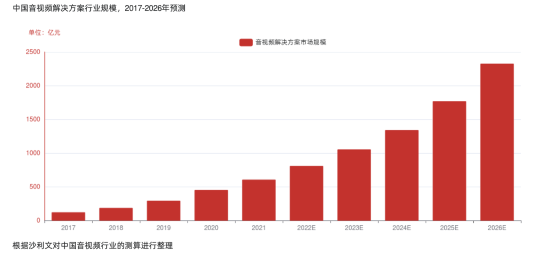 基于此,沙利文对中国音视频行业的分析显示,看向未来,这一行业将主要集中在实时渲染、智能协作、企业媒体应用等新的应用领域。预计这将为行业带来新的数字化音视频应用的增长潜力。据估算,到2026年,中国音视频行业的市场规模将达到2,321.4亿元。