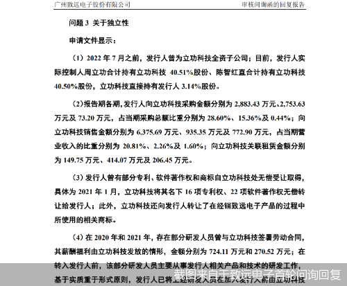 此外,在2020年和2021年,存在部分研发人员曾与立功科技签署劳动合同,其薪酬福利由立功科技发放的情形,金额分别为724.11万元和270.52万元。致远电子还曾与立功科技共用OA系统。
