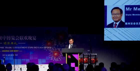 当晚致辞嘉宾及特邀嘉宾们包括维州上议院前议长阿金森,维州上议院前议长史密斯,维州多元文化前次长林美丰,中国贸促会澳洲首席代表陈敏,澳洲驻华前商务领事刘初阳,澳大利亚中国总商会墨尔本分会会长潘元生等为获得2023“澳中博览会奖”钻石奖,黄金奖和澳宝奖的机构和个人颁发了奖杯。