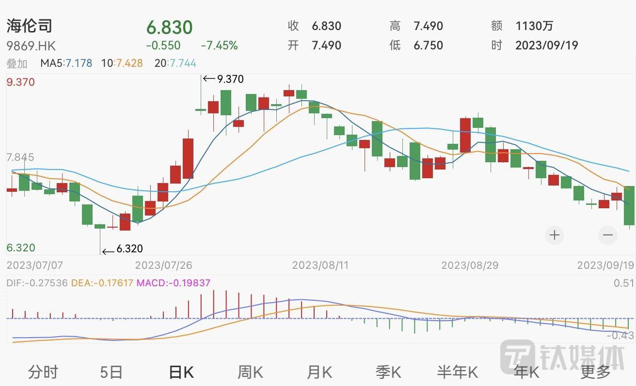 9月19日,海伦司(09869.HK)在经历连续两个交易日的股价上涨后转跌。
