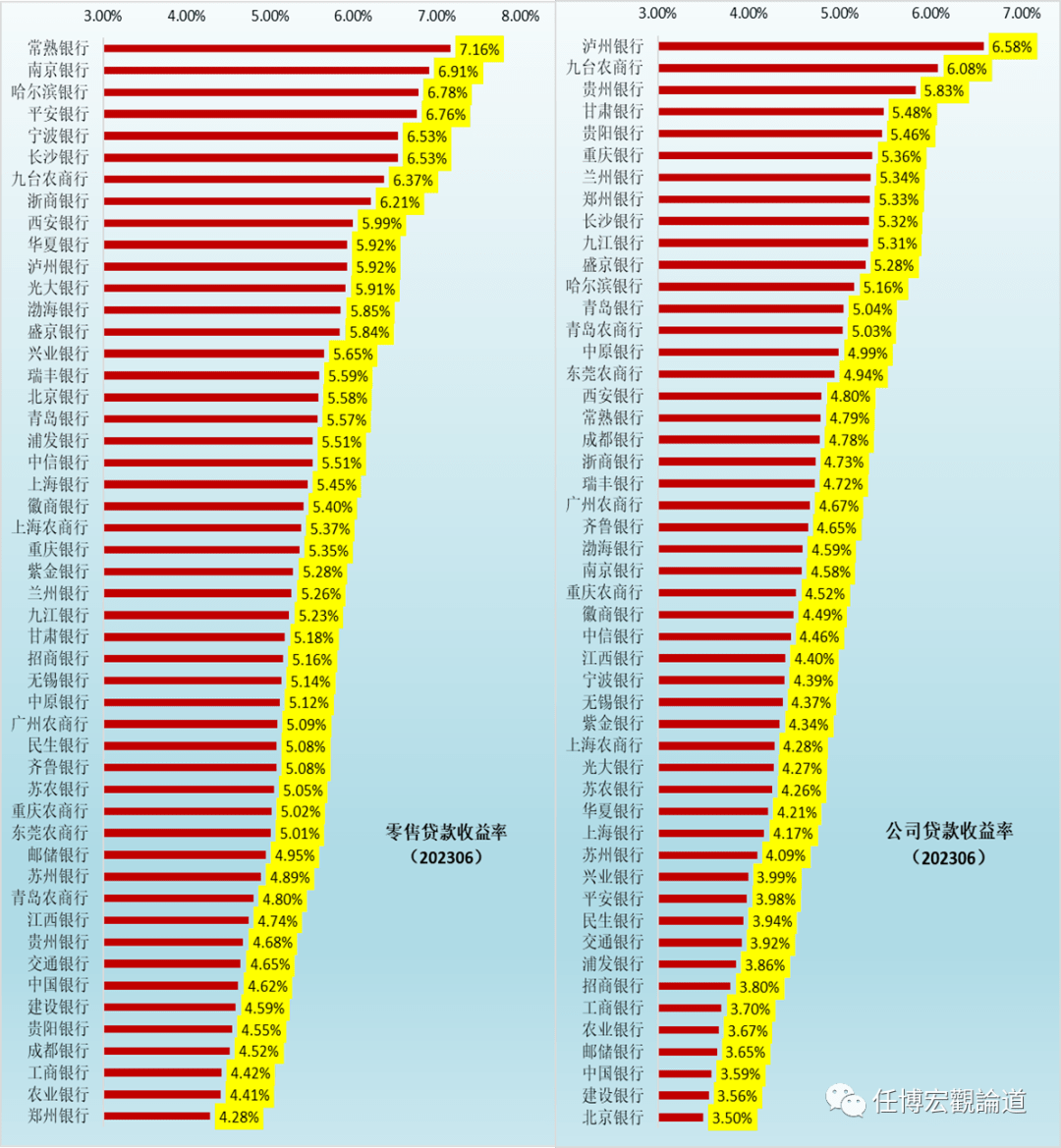 (六)零售贷款利率排序:最低4.28%、最高7.16%(常熟银行),平均5.34%