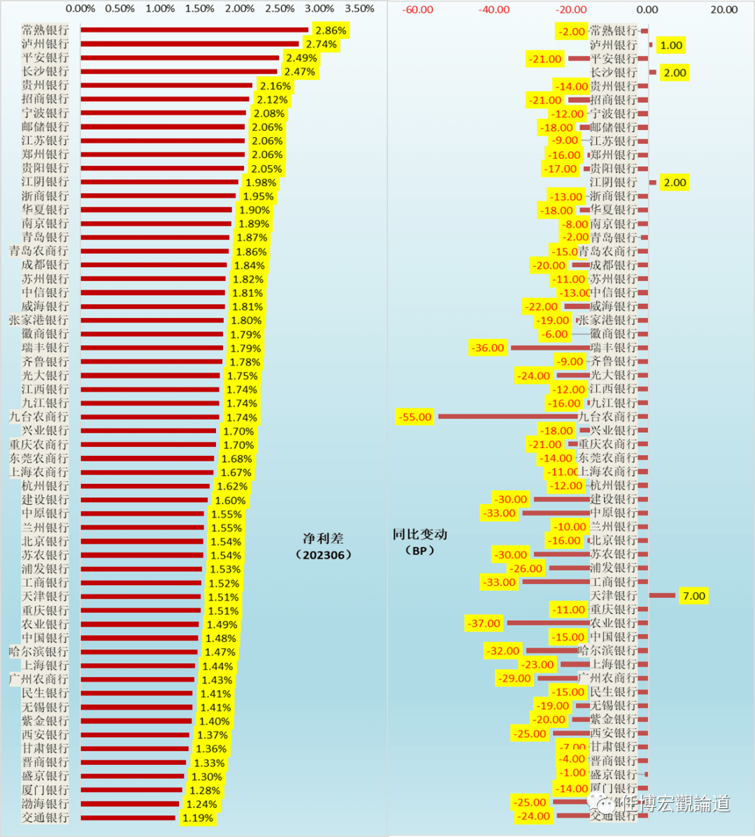 上市银行主要利差指标排序:很多银行的息差已经低于其不良率