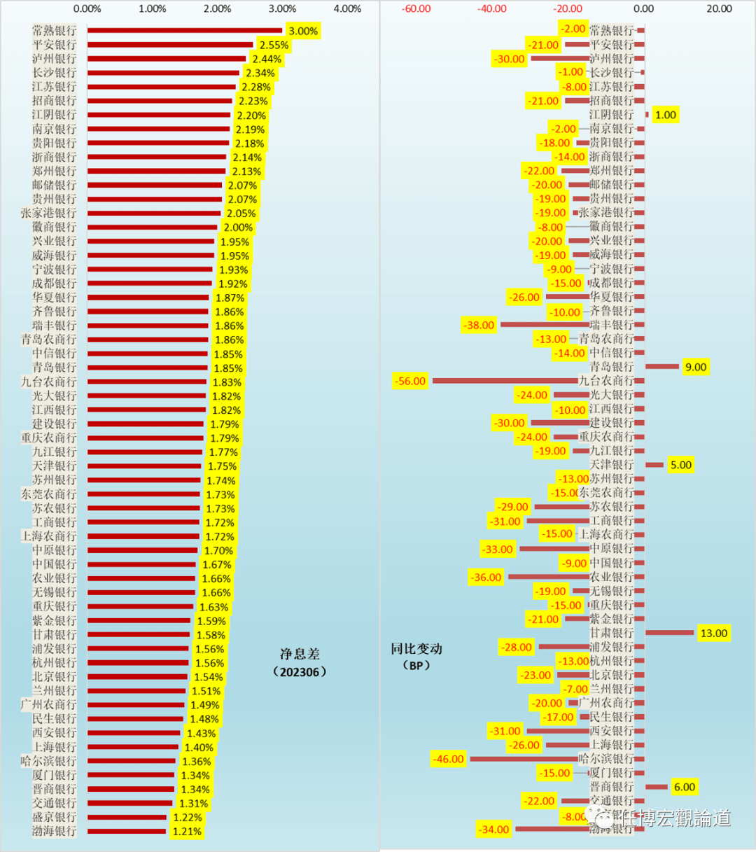 (二)净息差排序:最低1.21%(渤海银行)、最高3%(常熟银行),平均1.80%