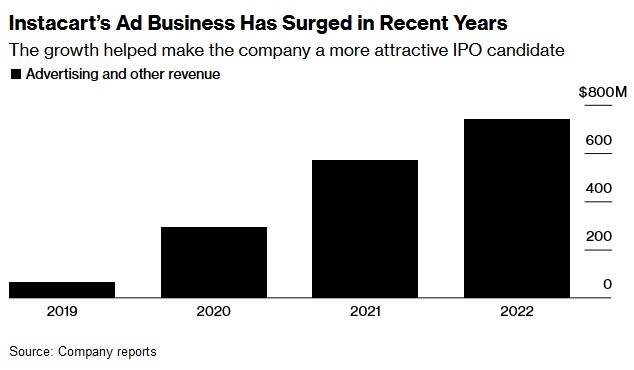 投资者并不会把赌注押在Instacart的杂货配送业务上,而是押注在该公司的数据和广告业务上。Instacart多年来一直在打造自己的广告业务,这是一项利用大量消费者购物数据的高利润业务,为Instacart的IPO之路增色不少。Instacart的IPO发行价定在28-30美元区间的高端,这将测试投资者对其新模式的兴趣。