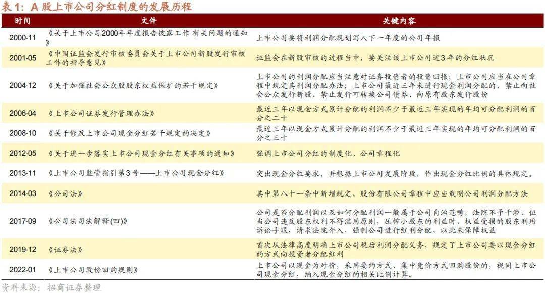 ⚑ 当前A股上市公司分红水平如何?自2001年以来,证监会不断完善公司治理和信息披露规则,通过政策引导和监管规范,不断提高上市公司的分红水平。分红政策不断完善以来,A股分红上市公司数量占比持续提升,目前分红上市公司数量占比也从2010年以前的50%左右提升至近几年70%的中枢水平。2010年以来A股上市公司整体的股息支付率稳步提升,一直处于30%以上,到2022年超过了40%。近几年A股的分红总规模已经超过港股,不过A股的股息率基本一直低于港股。另外,回购也被视为上市公司回馈股东的方式之一。和美股相比,A股回购规模偏低,未来随着A股上市公司的回购进一步常态化,回购也有望逐渐成为推动A股上涨的动力之一。