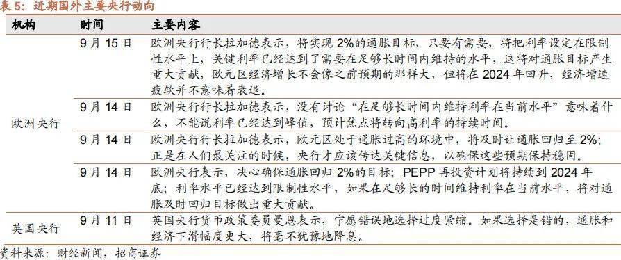 欧洲央行意外将关键利率上调至新高,并暗示加息结束。欧洲央行宣布加息25个基点,为连续第10次加息。欧洲央行决定,自9月20日起将主要再融资利率、边际借贷利率和存款机制利率分别上调至4.50%、4.75%和4.00%。欧洲央行预计,欧元区2023年、2024年和2025年通胀率分别为5.6%、3.2%和2.1%;将欧元区2023年经济增长预期下调至0.7%,将2024年和2025年增长预期分别调整为1.0%和1.5%。