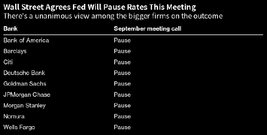 在通胀放缓之后,美联储料将在美东时间周三的政策决定中暂停加息,这将是今年以来的第二次,同时该央行可能还将对最早11月再次加息保持开放。