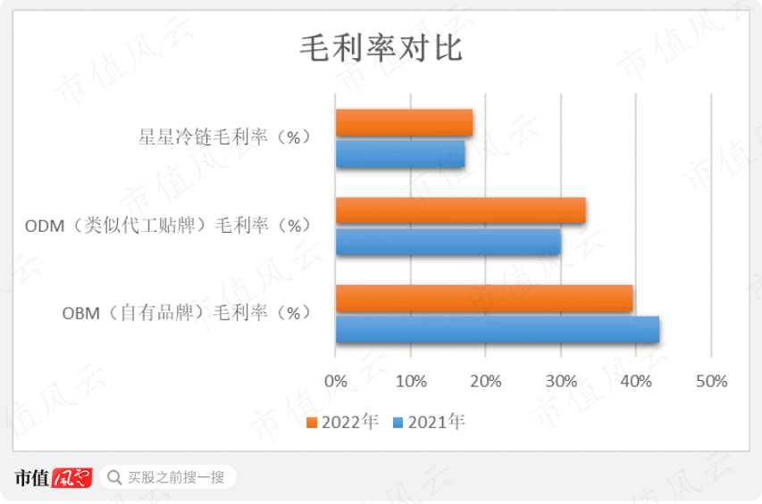 同业的星星冷链,则主要依靠贴牌这条路,ODM收入占比97%以上;自有品牌收入占比不足3%,规模仅有几千万。