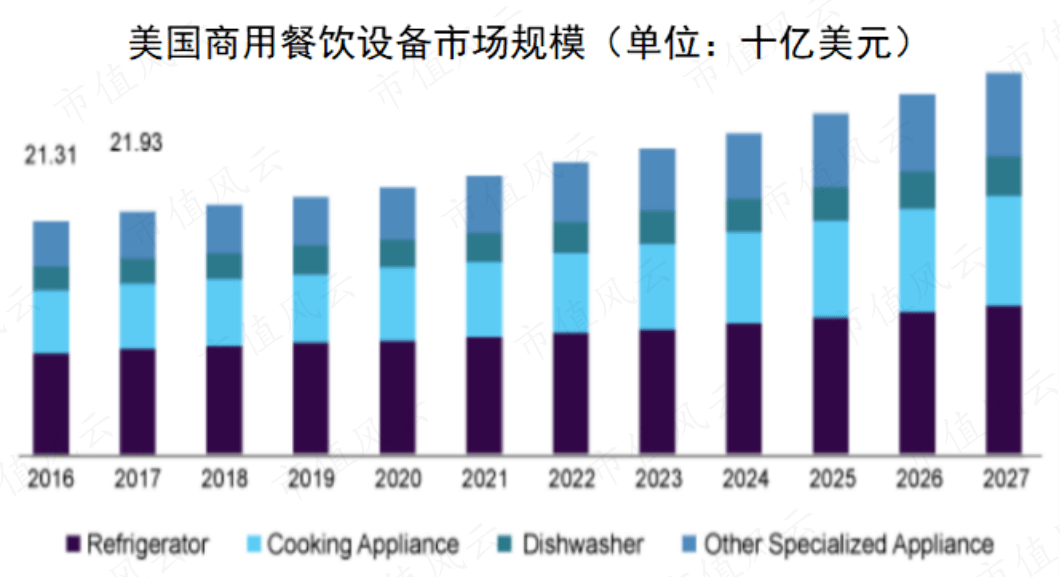 瞄准美国的原因也很简单,这是全球商用餐饮设备市场中最大的那块蛋糕,占比超过20%。