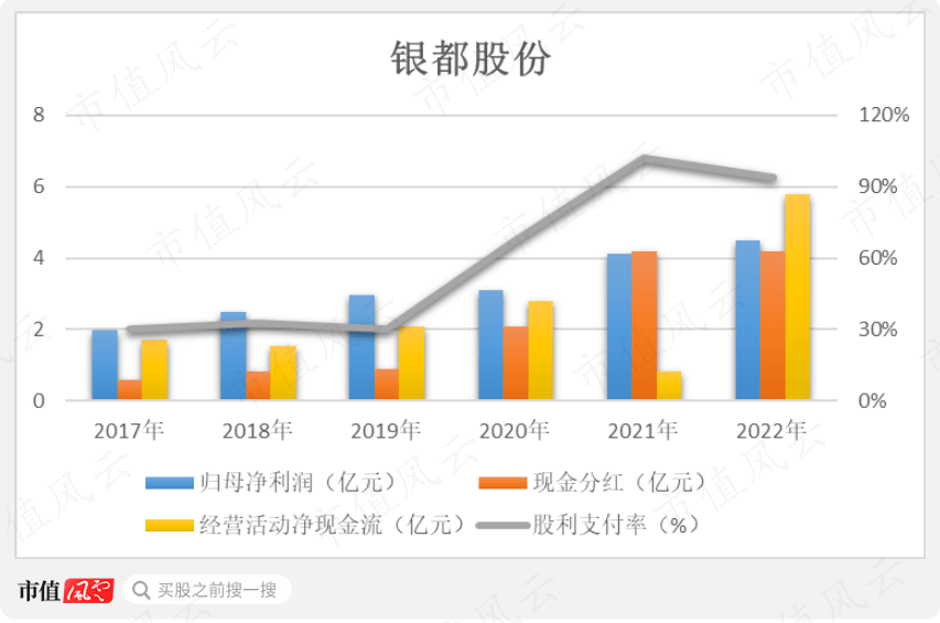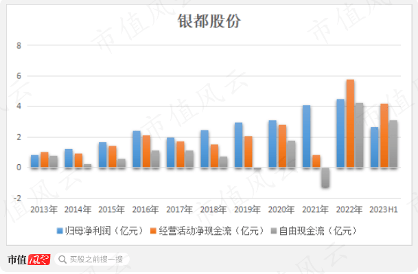 然而,这6年里银都股份靠着经营活动,一共带来了14.77亿现金净流入。