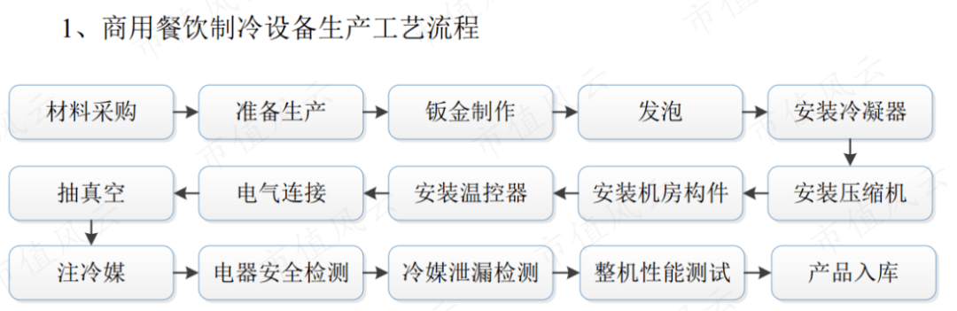 拿营收主力军(2022年占比75%)商用餐饮制冷设备而言,其制冷系统的核心部件是压缩机,配以冷凝器、铜管、温控器、不锈钢等零部件。