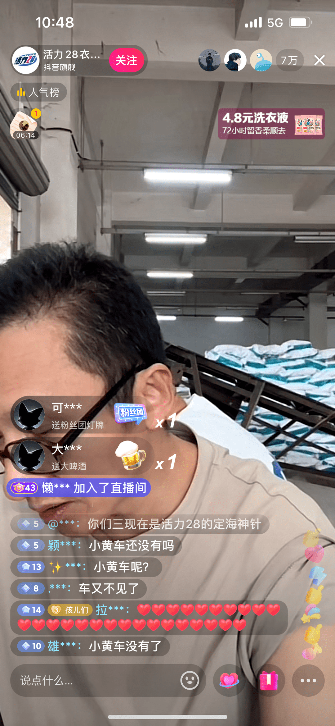有着近70年的历史的活力28也不甘其后,于9月13日晚在抖音直播间上架了多款79元的洗衣套餐,并由“三个老头”担任主播。这一场景引发了网友的好奇和同情,直播间人数一度达到10万+。期间,主播由于不熟悉直播规则和技巧,多次出错,网友纷纷刷屏提醒或指导他们。在活力28的商品很快被抢光后,主播甚至开始与网友唠嗑或跳舞。