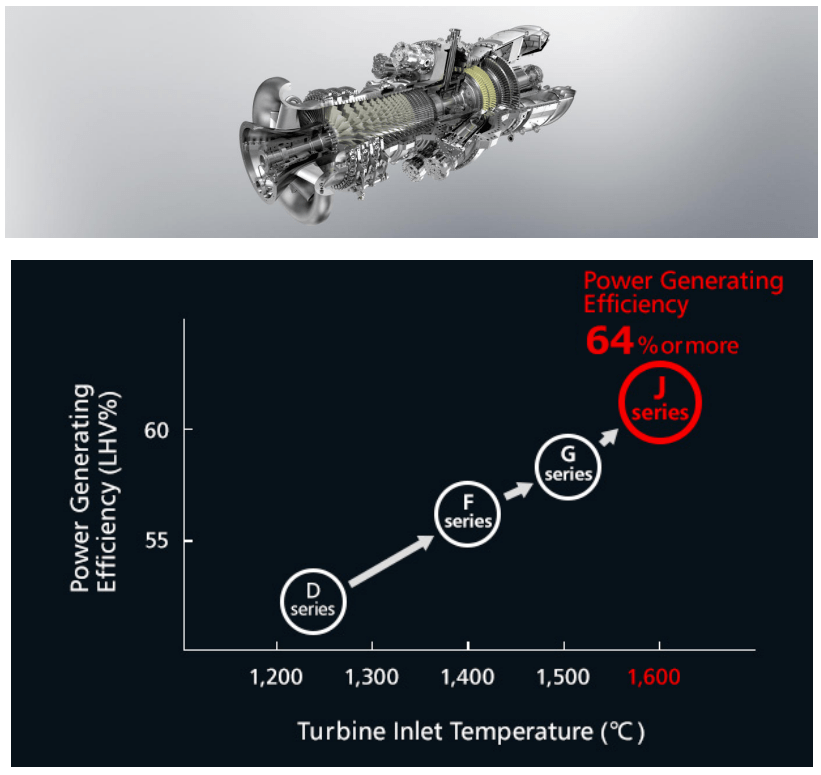 三菱重工把J型燃气轮机搭配到了GTCC(燃气轮机联合循环发电系统)上,这使得GTCC的发电效率比传统燃煤动力发电方式提高了20%,达到64%以上的世界最高水平,CO2排放量同时削减约50%。这使得GTCC具有即清洁又高效的发电优势。