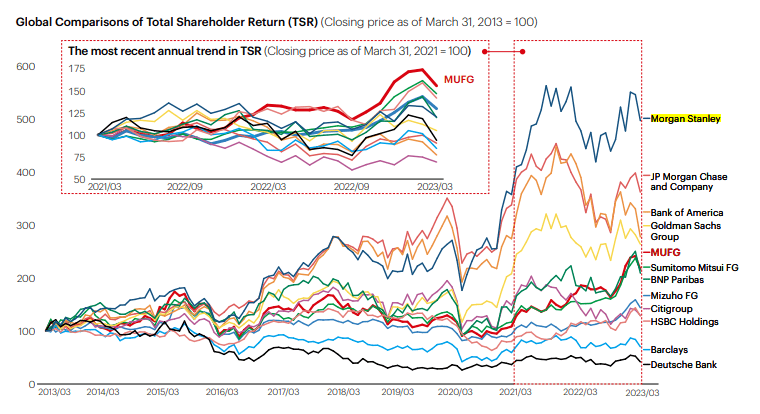 在股东总回报(TSR)的全球比较中,大摩同样排名第一。既然回报最高那最受益肯定就是第一大股东MUFG。
