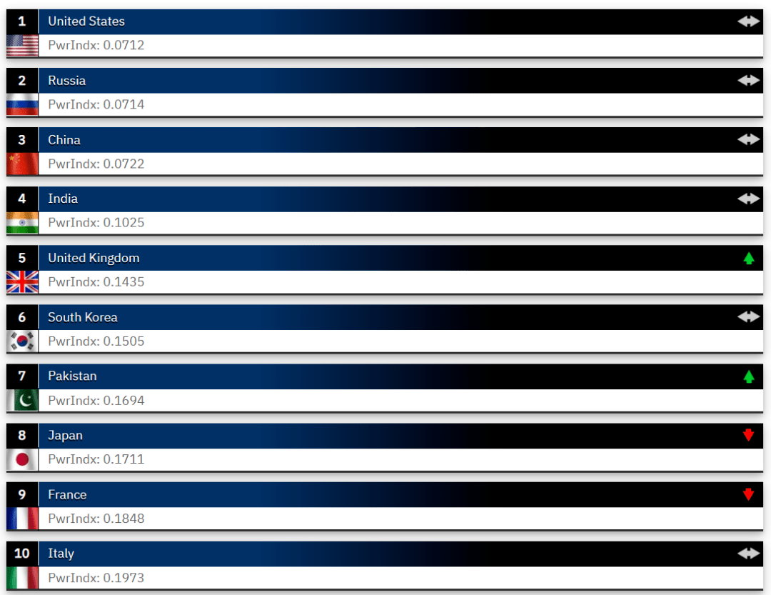 全球火力指数(GFP)显示,截止2023年9月1日,日本是世界十大强国之一全球排名第8。日本近年来持续与美国军方深化合作,不仅加快自身军力建设,让新型军舰巡视更是家常便饭,日本军国主义开始按捺不住“抬头”的趋势。