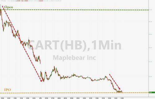 昨日新晋上市的杂货配送公司Instacart跌近11%,临近收盘一度跌破30美元的发行价,最终收于30.10美元,昨日曾大涨43%后收涨12%。