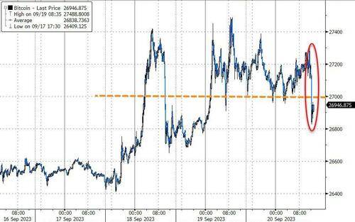 美联储决策后,比特币跌1%并失守2.7万美元 现货黄金徘徊1940美元创近三周最高,伦铜止步三日连跌,锌和铝涨约2%