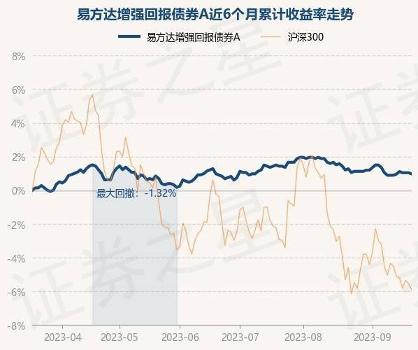 9月20日,易方达增强回报债券A最新单位净值为1.347元,累计净值为2.468元,较前一交易日下跌0.07%。历史数据显示该基金近1个月下跌0.44%,近3个月上涨0.07%,近6个月上涨1.0%,近1年上涨1.52%。该基金近6个月的累计收益率走势如下图: