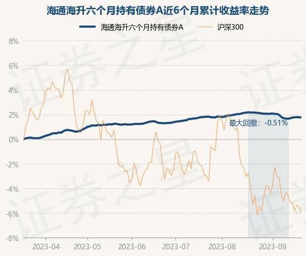 9月20日,海通海升六个月持有债券A最新单位净值为1.1889元,累计净值为1.5759元,较前一交易日下跌0.01%。历史数据显示该基金近1个月下跌0.38%,近3个月上涨0.47%,近6个月上涨1.75%,近1年上涨1.63%。该基金近6个月的累计收益率走势如下图: