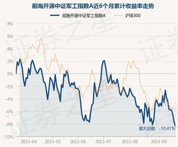 9月20日,前海开源中证军工指数A最新单位净值为1.672元,累计净值为1.672元,较前一交易日下跌0.77%。历史数据显示该基金近1个月下跌3.24%,近3个月下跌6.96%,近6个月下跌8.28%,近1年下跌21.24%。该基金近6个月的累计收益率走势如下图: