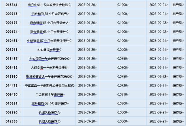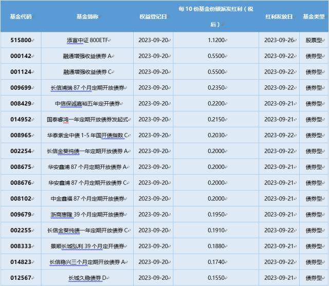 四、9月20日基金分红一览