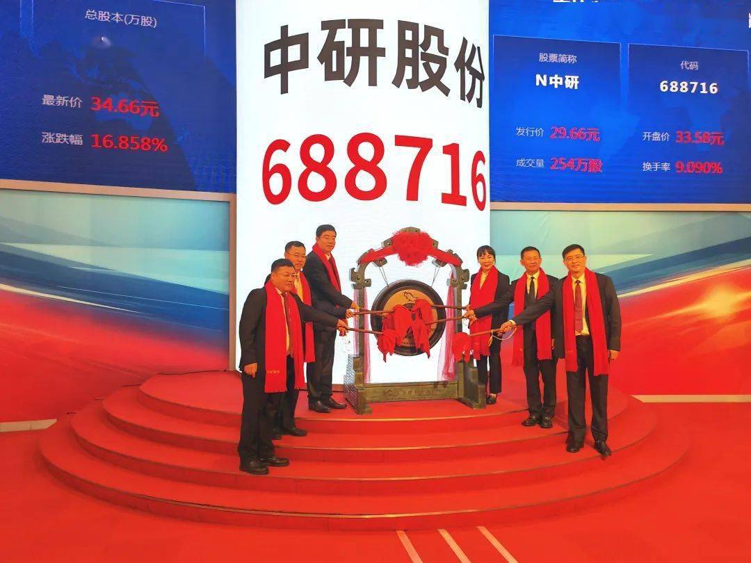 9月20日,位于绿园经济开发区的企业吉林省中研股份有限公司上市敲钟仪式在上交所举行。长春市委常委、常务副市长马延峰,绿园区委书记宋长者和中研股份董事谢雨凝共同敲响开市宝钟。这是继2020年研奥电器在深交所上市之后,绿园又一企业成功上市。中研股份成为2023年吉林省首个A股市场上市企业,是目前A股市场唯一一支聚醚醚酮上市企业。