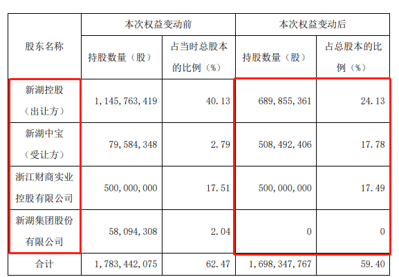 另外,上述协议转让与公司总股本变化、新湖控股及其一致行动人的减持一起构成该次权益变动。