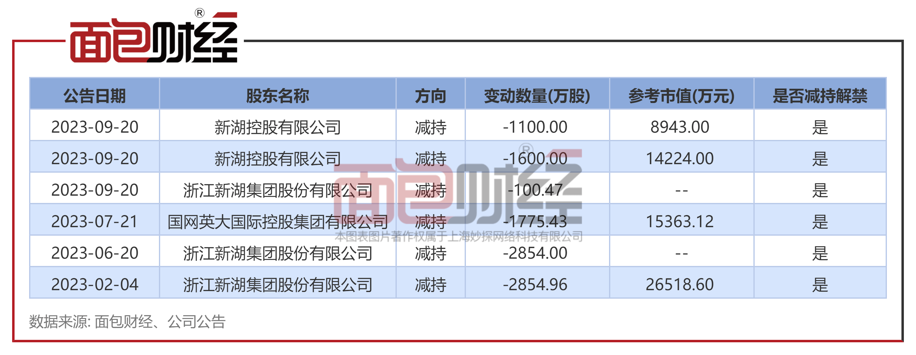 2023年1月10日至6月19日,股东新湖集团通过集中竞价交易方式减持公司约5708.96万股股份。随后,2023年7月28至8月4日,新湖集团再通过大宗交易方式减持公司合计约100.47万股股份,上述减持完成后,新湖集团不再持有公司股份。